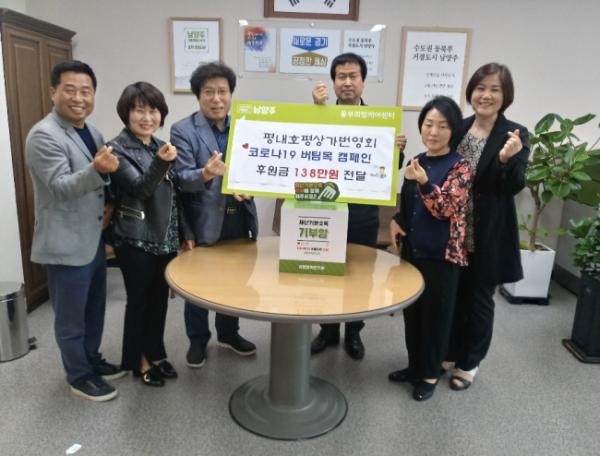 평내호평상가번영회(대표 백승운)는 지난 4일 호평평내행정복지센터(센터장 주영환)를 방문해 코로나19로 어려움을 겪고 있는 취약계층을 위한 후원금 138만원을 경기북부사회복지공동모금회에 지정 기탁했다.