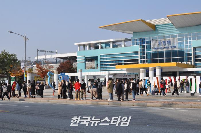 [한국뉴스타임=이명수기자] 남이섬이 지난 24일부터 31일까지 ‘헬로! 할로윈’ 축제를 개최한다. 이에 할로윈 축제를 즐기려는 인파가 몰려 31일 가평역에서 남이섬으로 가는 여행객의 택시 및 버스 대기줄이 100미터에 이르고 있다.