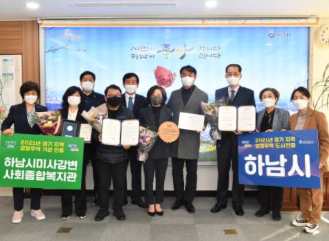 [한국뉴스타임=명기자] 하남시가 지난 10월 29일 경기도 구리시청 대강당에서 개최된 ‘2021년 경기 공정무역 2주간의 축제’ 개막식에서 (사)한국공정무역마을위원회로부터 공정무역도시 인증서를 받았다.