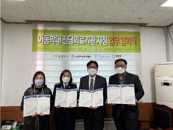 [한국뉴스타임=명기자] 남양주시는 지난 10월 29일 학대 피해 아동의 신속하고 체계적인 의료 지원을 위해 원병원을 아동학대 전담의료기관으로 지정하고, 남양주남부경찰서와 경기남양주아동보호전문기관 등이 참여해 민·관·경 업무협약을 체결했다고 밝혔다.