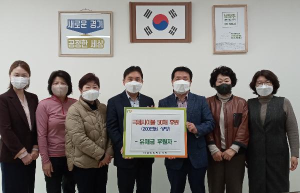 한편, 유재금 후원자는 나눔과 봉사의 뜻을 모아 결성된 봉사 모임인 ‘함께 하는 사람들’의 회장으로서 활발히 활동하고 있을 뿐만 아니라 진접읍 진벌리 기업인들의 모임인 철마기업인회 수석총무로 재임 중이며, 수석총무로서 철마기업인회 회원들의 연이은 기부행렬에도 선한 영향력을 끼치는 등 유재금 후원자의 남다른 이웃사랑이 지역사회 사회복지증진 및 나눔 문화 조성에 크게 이바지하고 있다.