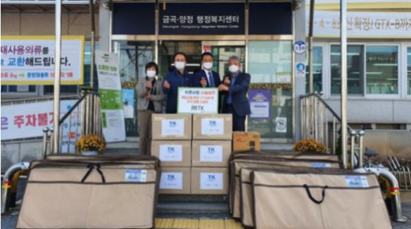 [한국뉴스타임=명기자] 남양주시 금곡양정행정복지센터는 지난 10월 29일 주식회사 티케이(대표이사 이태경)가 관내 저소득 가구를 위해 680만원 상당의 겨울용 물품을 후원했다고 밝혔다.