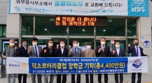 [한국뉴스타임=명기자] 남양주시 국제로타리 3600지구 덕소로타리클럽은 지난 1일 와부조안행정복지센터에서 우수 청소년 장학금 전달식을 가졌다.