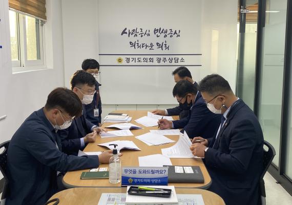 [한국뉴스타임=명기자] 경기도의회 안기권(도시환경위, 광주1), 박관열(경제노동위, 광주2), 박덕동(교육기획위, 광주4)도의원은 2일 경기도의회 광주상담소에서 광주시청 대중교통과 관계공무원, 전문 교통기술사와 함께 광주시 대중교통계획수립을 위한 개선방안에 대해 논의하는 시간을 가졌다.