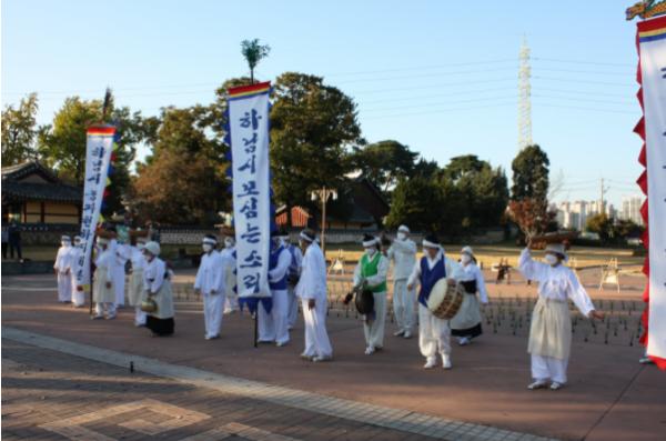 행사장에는 코로나19사회적 거리두기 상황에 방역지침을 지키며 경기도의회 추민규 의원을 비롯한 하남시의회 의원, 하남문화원 임원, 하남시민들이 함께 참여하여 민속연희를 지켜보며 격려를 아끼지 않았다.