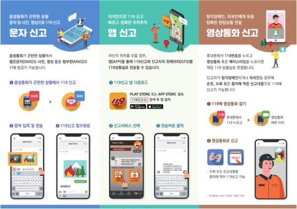 경기도북부소방재난본부(본부장 임원섭)에서는 이처럼 의사소통이나 음성통화가 곤란한 경우에도 얼마든지 신속하고 편리하게 119 신고가 가능하도록 ‘119 다매체 신고서비스’를 운영하고 있다.