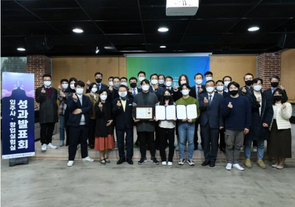 이어 2부 ‘실험실 성과발표회’에서는 지난 8월 공모전에서 선정된 청년창업실험실 6개 팀이 2개월 간 8회, 총 42시간의 멘토링을 통해 보완한 사업계획서를 발표하고 현장 심사 후 최종 시상을 진행했다.