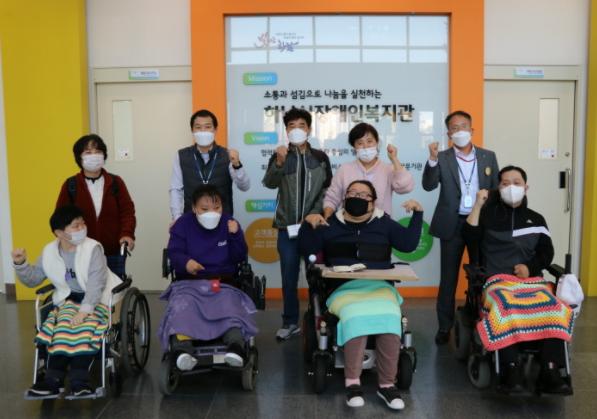 박은경 대표는 “마을공동체 지원 사업에 주민들이 직접 아이디어를 내고 적극 참여하여 만든 작품이 필요한 분들께 잘 전달되어 추운 겨울을 따뜻하게 보내는데 조금이나마 도움이 되었으면 한다. 앞으로도 긍정적인 기부문화를 형성하도록 더욱 노력하여 지역사회 장애인가정에 작게나마 도움이 되고 싶다.”고 전했다.