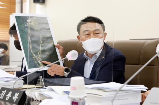 진 부의장은 2021년 행정사무감사 첫날인 5일 농정해양위원회 회의실에서 열린 농정해양위원회 소관 농정해양국을 대상으로 작년에 이어 ‘지곡저수지 용도폐지 과정에 대한 의혹’을 다시 한번 제기하는 등 석연치 않은 점에 대해 집중 추궁하였다.