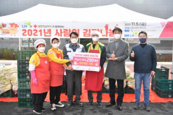 이날 행사에는 김상호 하남시장과 적십자사봉사회 회원, LH 분쟁조정위원회 임직원들이 참여해 700포기의 김장김치를 담갔다. 이어 아파트단지에 거주하는 취약계층 세대에 전달하면서 어려운 이웃의 안부를 살폈다.