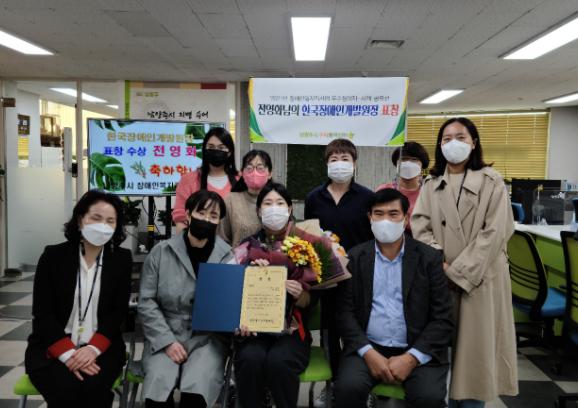 [한국뉴스타임=명기자] 남양주시는 남양주시수어통역센터에서 장애인일자리사업 참여자로 일하고 있는 전영화 씨가 보건복지부와 한국장애인개발원이 주관한 ‘2021년 장애인일자리사업 우수참여자 및 우수일자리 사례 선발’에서 우수참여자 부문 우수상(한국장애인개발원장상)을 수상했다고 8일 전했다.