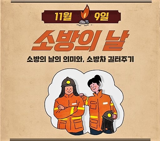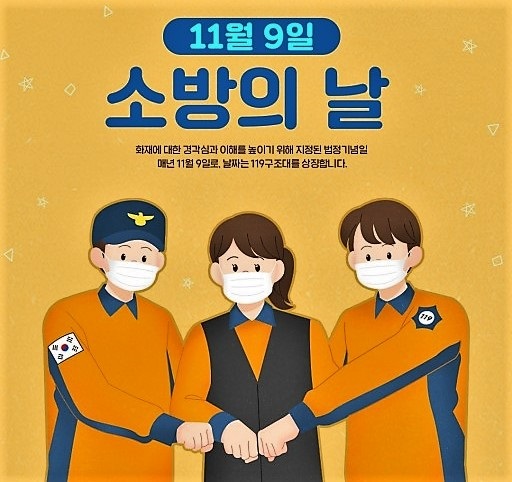 [한국뉴스타임=명기자] 11월 9일, 오늘은 제59주년 소방의 날이다. 화재를 예방, 경계하고 진압하는 작용을 소방(消防)이라고 한다. 소방의 역사는 고대에서부터 시작되었는데 조선시대 『경국대전(經國大典)』에는 금화(禁火)로 명시되어 있다. 세종(世宗) 8년(1426) 2월에는 병조(兵曹) 아래 금화도감(禁火都監)을 설치하였으니 이것이 최초의 소방관아이다.