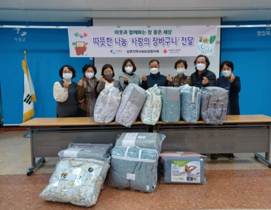 상면 지역사회보장협의체에 따르면 이번 사업은 상면 지사협 CMS모금 활동을 통한 제5차 사업으로 따뜻한 나눔을 위해 추진되며, 매월 다른 주제로 다양한 계층에게 지원을 하는 사업으로 11월 동절기를 맞이하여 취약계층 12가구에 따뜻한 겨울나기를 위해 이불세트를 전달했다.