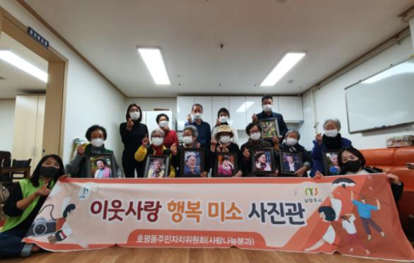 ‘이웃 사랑 행복 미소 사진관’ 행사는 지난 5월 수족침 봉사를 위해 늘을수족침 사랑방 동아리와 함께 경로당을 방문한 호평동 주민자치위원회 위원들이 어르신들의 자연스러운 모습을 사진에 담아 미소를 선물하자는 뜻을 갖고 분과 사업으로 기획했으며, 노기룡 위원의 재능 기부로 진행되고 있다.