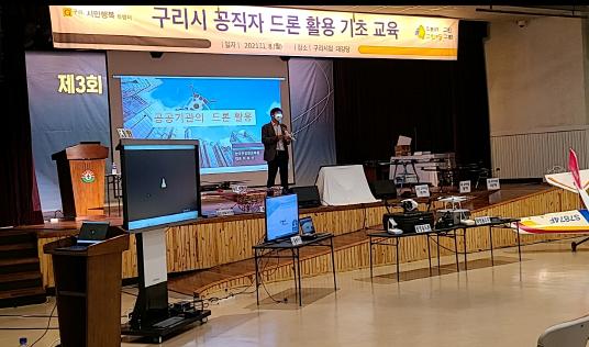 [한국뉴스타임=명기자] 구리시는 8일 구리시청 대강당에서 70명의 공무원이 참석한 가운데 ‘드론 산업 행정업무 접목을 위한 공직자 드론 활용 기초 교육’을 진행했다.