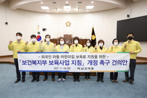 또 부모의 신분에 상관없이 대한민국에 합법적으로 체류하고 있는 외국인 아동이 보육료 지원에서 소외되지 않도록 하기 위한 ‘외국인 아동 어린이집 보육료 지원을 위한 「보건복지부 보육사업 지침」개정 촉구 건의안’도 만장일치로 채택했다.