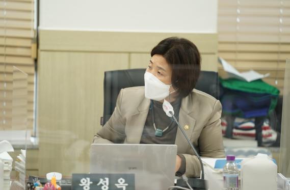왕성옥의원은 재단의 조직역량 강화가 필요하다며 능력이 있는데도 승진‧ 월급‧ 보직에 피해를 보는 일은 없어야 하고, 이는 경기도 공공기관의 공통된 어려움이라는 점에 공감을 표시하며 의회와 협력이 필요한 부분은 소통을 강화해주기를 당부하였다.