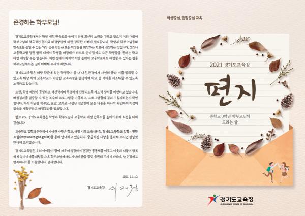 [한국뉴스타임=명기자] 경기도교육청이 10일 고교 평준화지역 중학교 3학년 학부모에게 2022학년도 학생 배정 방안을 안내하는 서한문을 발송했다.