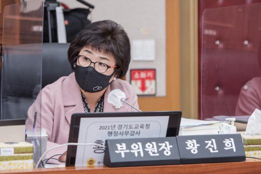 [한국뉴스타임=명기자] 경기도의회 교육기획위원회 황진희 의원(더불어민주당, 부천3)은 11월 10일 경기도의회 제356회 정례회 중 경기도의회 회의실에서 경기도교육청 기획조정실, 대변인, (재)경기도교육연구원, 경기도교육정보기록원, 4.16민주시민교육원을 대상으로 한 넷째날 행정사무감사에서 사회적 취약계층의 일자리 확산을 위해 경기도교육청에서 중증장애인생산시설 및 장애인표준사업장 생산품을 우선 구매할 시 학교와 교육지원청의 구입을 독려해 줄 것을 권고하였다.