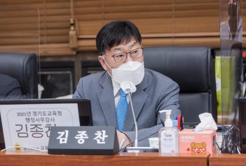 [한국뉴스타임=명기자] 경기도의회 교육기획위원회 김종찬 의원(더불어민주당, 안양2)은 11월 10일 경기도의회 제356회 정례회 중 경기도의회 회의실에서 진행된 경기도교육청 기획조정실, 대변인, (재)경기도교육연구원, 경기도교육정보기록원, 4.16민주시민교육원을 대상으로 한 넷째날 행정사무감사에서 공공기관 위탁 시 재위탁 조항의 탄력적 운영을 고려해 줄 것을 요청하였다.
