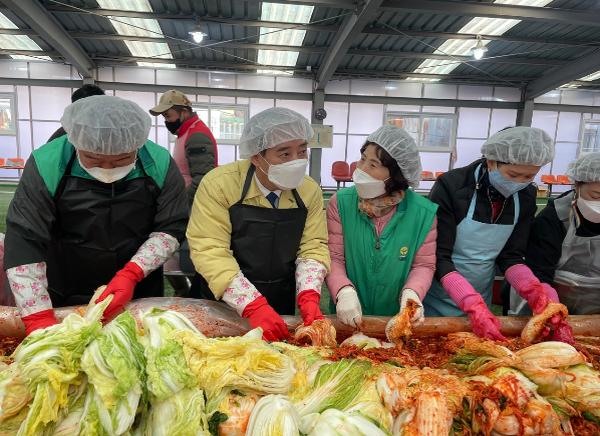 [한국뉴스타임=명기자] 소흘읍행정복지센터는 10일 남·녀새마을회, 이장협의회, 주민자치위원회, 지역사회보장협의체, 자율방범대 등 5개 단체 회원 70여 명이 참석한 가운데 소흘읍 민·관 합동 행복나눔 김장나누기 행사를 추진했다.