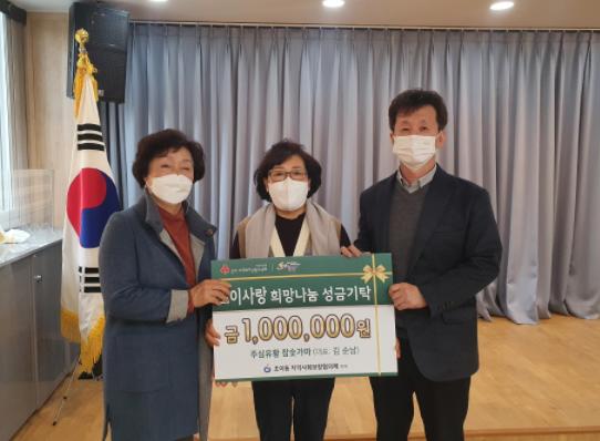 소병찬 초이동장은 “코로나19로 힘든 상황 속에도 지역의 어려운 이웃을 위해 성금을 기탁해주셔서 감사드린다”며 “성금은 경기사회복지공동모금회를 통해 지역 내 저소득층 가구에 소중히 쓰이도록 하겠다”고 밝혔다.