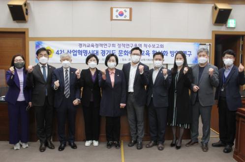[한국뉴스타임=명기자] 경기도의회 교육기획위원회 연구단체 경기교육정책연구회(회장 정윤경 의원)는 교육기획위원회 회의실에서 ‘4차 산업혁명시대 경기도 문화예술교육 활성화 방안 연구’에 대한 연구용역 착수보고회를 개최했다.