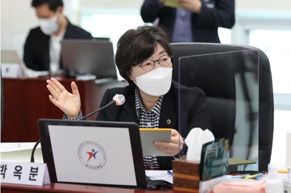 [한국뉴스타임=명기자] 경기도의회 교육행정위원회 박옥분 의원(더불어민주당, 수원2)은 10일 경기도교육청 북부청사에서 열린 미래교육국·운영지원과·교육복지종합센터·평생학습관·교육도서관에 대한 2021년 행정사무감사에서 학부모의 수요를 우선 고려하여 초등돌봄교실 19시 연장 운영 확대와 직업계고 학생의 보편적 교육복지 확보를 위한 교육복지사 배치에 도교육청이 적극적으로 지원해 줄 것을 촉구했다.