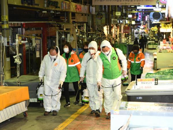 이어 안승남 시장은“다행히 우리의 노력 결실로 사회적 거리두기에서 생활 속 거리두기로 전환할 만큼 바이러스 확산세가 호전되어 가고 있다”며“그럼에도 무증상 속에서도 전파력이 강한 코로나19 특성을 감안하여 잠시도 긴장의 끈을 놓지 않고 지금까지 해왔던 방식으로 관내 불특정 다수가 모일 수 있는 다중이용시설에 대한 효율적이고 선제적인 방역소독을 지속적으로 실시하고, 언제 어디서나 사람이 모이는 곳이라면 마스크 착용과 함께 적절한 거리두기를 잊지 마시기를 바란다”고 간곡히 당부했다.