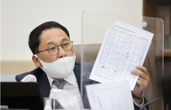 [한국뉴스타임=명기자] 경기도의회 교육행정위원회 안광률 의원(더불어민주당, 시흥1)은 11일 경기도교육청을 대상으로 한 2021년도 행정사무감사에서 학교 석면교체 공사 진척률이 상당히 낮다는 점을 지적하며 신속한 사업추진을 위해서는 공사의 분리발주가 필요하다고 촉구했다.