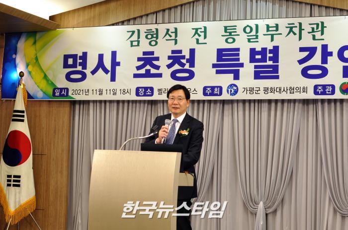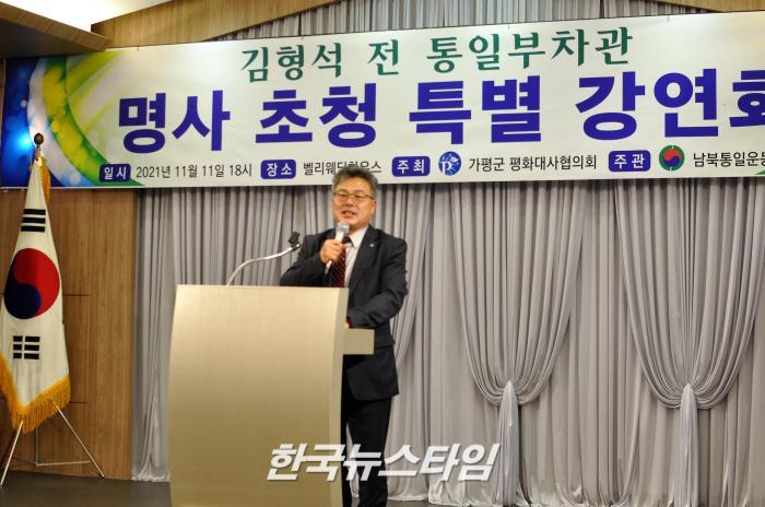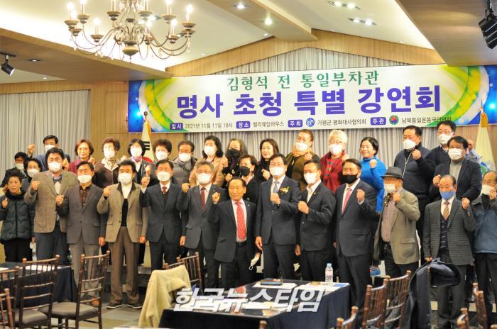[한국뉴스타임=이명수기자] 11일 오후 가평군 평화대사협의회 주최 남북통일국민운동엽합 가평군지부 주관으로 명사 초청 특별 강연회가 개최되었다.