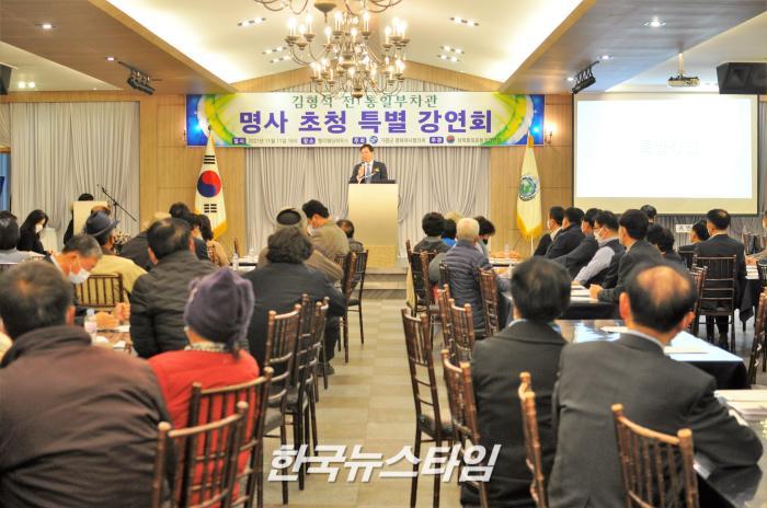 '북한지도부와 한반도 미래'라는 주제로 김형석 전 통일부 차관이 지역주민들에게 특별 강연을 하였다.