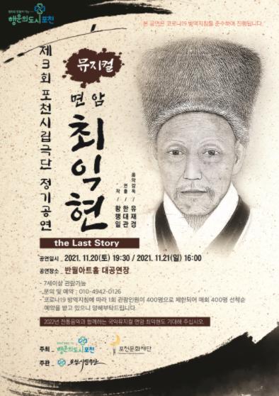 포천시 역사인물이자 항일의병운동으로 일본에 맞선 조선의 마지막 선비 면암 최익현 선생의 일대기를 그린 창작뮤지컬인 '면암 최익현 the Last Story'는 최익현 선생의 친일파 처단 요구와 단발령 반대에 이어 항일의병운동, 대마도 강제유배 등 역사에 따른 순차적 진행을 웅장한 음악과 무대에 올린 작품이다.