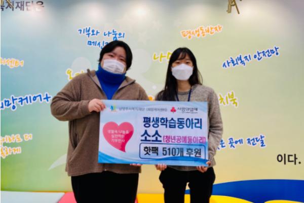 [한국뉴스타임=명기자] 남양주시복지재단은 지난 9일 남양주시 평생학습동아리 소소(대표 송주현)에서 관내 취약계층을 위해 핫팩 510개를 후원했다고 전했다.