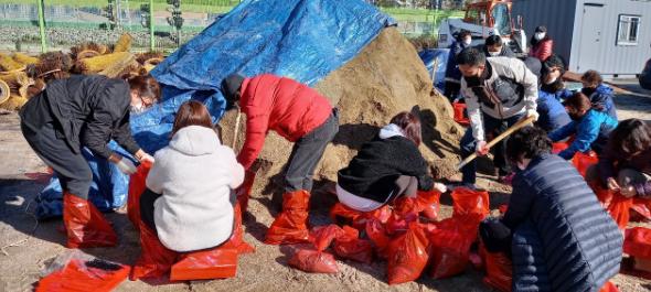 평내동 자율방재단, 안전지킴이, 통장협의회 및 평내동주민센터 직원 등 30여 명이 참여한 가운데 제작한 모래주머니는 평내동 관내 설해 취약지와 상습 결빙지역에 배치해 강설 및 도로결빙 시 시민 누구나 사용할 수 있도록 했다.