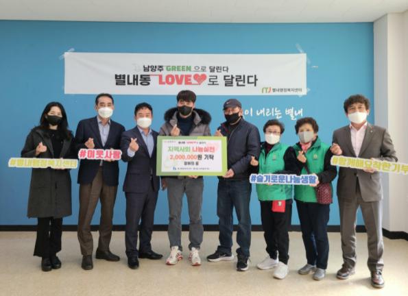 [한국뉴스타임=명기자] 남양주시 별내행정복지센터는 지난 11일 별내동 소재 청해수산 장어의 꿈에서 후원금 200만원을 별내동 새마을부녀회에 지원했다고 밝혔다.