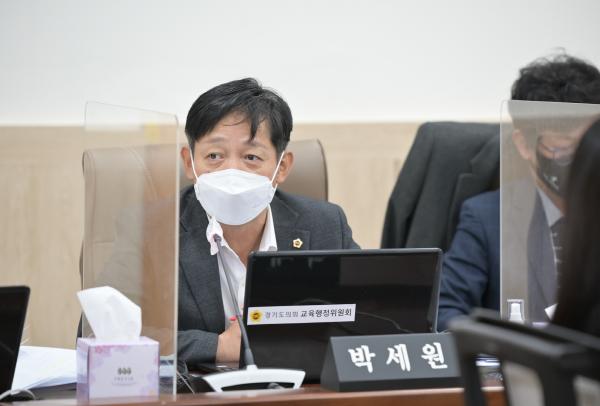 박세원 의원은 질의에서 “올해 경기도 내 한 고등학교 급식실 휴게실에서 벽에 달린 옷장이 떨어지면서 조리종사원이 크게 다치는 불미스러운 사건이 발생하였다”며, “급식실 휴게실 사고 발생 이후 교육청에서는 어떤 개선의 노력을 하였는가?”라고 물었다. 이금재 교육협력국장은 “사건 이후 전 학교 휴게실에 대해 안전점검을 실시하였고, 벽면 부착형 옷장을 다 철거하고 안전한 캐비넷으로 전면 교체하였으며, 산재사고 예방을 위해 안전에 대한 주의를 촉구하는 공문도 시행하였다.”고 답변하였다.