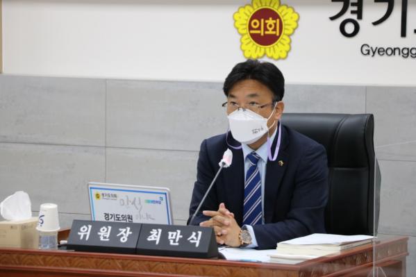 [한국뉴스타임=명기자] 경기도의회 문화체육관광위원회 최만식 위원장(더민주, 성남1)이 15일 상임위회의실에서 열린 2021년 경기콘텐츠진흥원 행정사무감사에서 메타버스 기술을 활용해 지역 간 문화격차를 해소할 수 있는 다양한 문화콘텐츠를 발굴할 것을 주문했다.