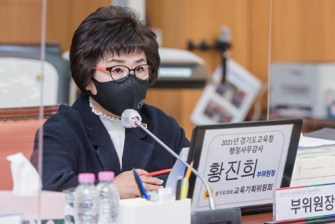 [한국뉴스타임=명기자] 경기도의회 교육기획위원회 황진희 의원(더불어민주당, 부천3)은 11월 15일 경기도의회 제356회 정례회 중 경기도교육청 남부청사에서 진행된 경기도교육청에 대한 총괄 행정사무감사에서 도교육청과 교육지원청이 일선 학교에 실질적인 지원을 해야 한다고 지적했다.