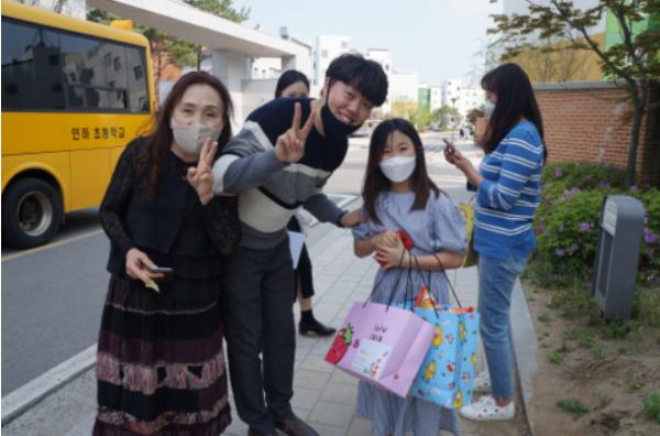 어린이날 기념 이벤트를 마친 학생들과 담임선생님은 건강한 모습으로 빨리 학교에서 만나자고 약속했다.