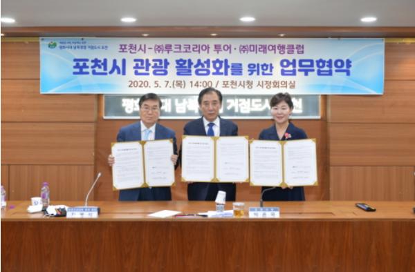 [KNT한국뉴스타임] 포천시는 7일 시정회의실에서 ㈜루크코리아투어(회장 차명석) 및 ㈜미래여행클럽(대표 이순애)과 관광 활성화를 위한 업무협약을 체결했다.