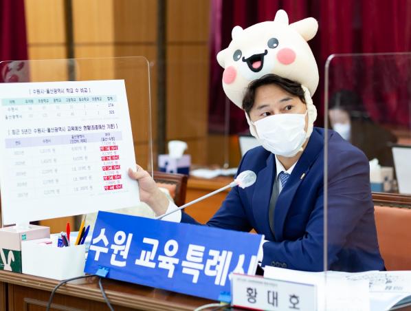 황대호 의원은 “울산과 비교해보면 수원은 이미 광역시보다도 더 큰 규모의 자치단체임에도 단지 기초자치단체라는 이유만으로 행정조직과 재정 등에서 심각한 역차별을 받아왔다”며, “특히 수원시는 내년부터 특례시로 지위가 변경됨에도 여전히 학생들은 열악한 교육환경에서 수업을 받아야만 하는 상황”이라고 지적했다.