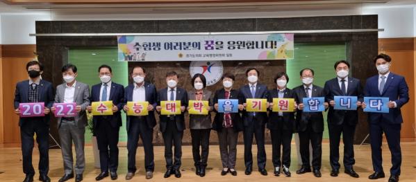 [한국뉴스타임=명기자] 경기도의회 교육행정위원회는 16일 경기도교육청 본청에 대한 총괄 행정사무감사 도중 18일 실시 예정인 대학수학능력시험에 응시하는 경기도 내 수험생에 대한 격려와 응원의 메시지를 보냈다.