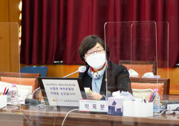 이에 박옥분 의원은 “교육의 질과 직결된 학급당 학생 수는 학생들의 학습권에 중요한 문제이다. 학급당 학생 수 감축은 코로나19 시대의 최고의 방역이기도 하다. 경기도는 개발사업이 계속 진행되는 곳이니만큼 도교육청이 거시적인 관점에서 선제적으로 대응해주길 바란다”고 촉구했다.