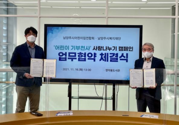 [한국뉴스타임=명기자] 남양주시복지재단은 지난 16일 ‘어린이 기부천사 사랑 나누기 캠페인’을 위해 남양주시어린이집연합회와 업무협약(MOU)을 체결했다고 17일 밝혔다.