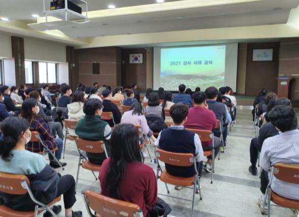 단계적 일상회복 전환에 따른 방역수칙에 맞춰 99명의 직원을 대상으로 이루어진 이번 교육에서는 실제 사례를 중심으로 △징계사례 △분야별 주요 감사 지적사항 △반복 지적사항 등을 소개하고 사전에 예방할 수 있는 실무 방법 등을 교육했다.