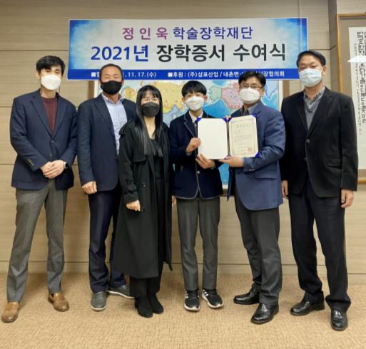 정인욱 학술재단은 지역인재육성을 위해 어려운 환경에서도 학업에 정진하는 내촌면 중․고등학생 및 대학생들에게 지난 2009년부터 13년째 지속적으로 장학금을 전달하고 있다.