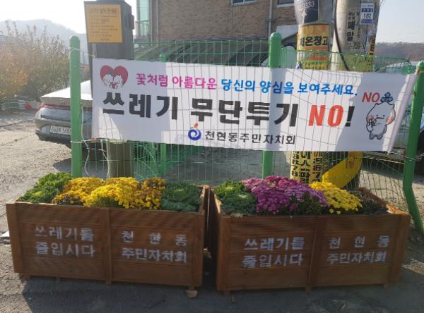천현동 주민자치회는 2021년도 주민자치 활성화 사업으로 지난 10월 21일부터 31일까지 쓰레기 상습 무단투기 지역 11곳에 25개의 화분을 설치했다. 이를 통해 쓰레기 무단투기도 줄이고 주변 경관도 살리는 일석이조의 효과를 내고 있다.
