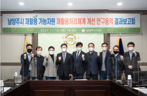[한국뉴스타임=명기자] 남양주시의회 의원연구단체 ‘남양주시 재활용 가능자원 재활용처리체계 개선 연구모임’이 18일 시의회 소회의실에서 연구용역 결과보고회를 개최했다.