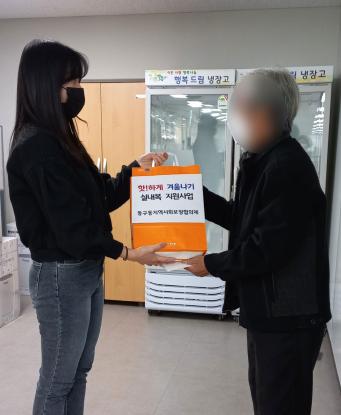 실내복은 동구동 지역사회보장협의체 CMS 후원금으로 마련되었으며, 어르신들이 추운 겨울철을 건강하게 보내실 수 있도록 따뜻한 마음을 담아 전달했다.
